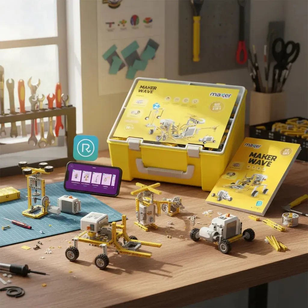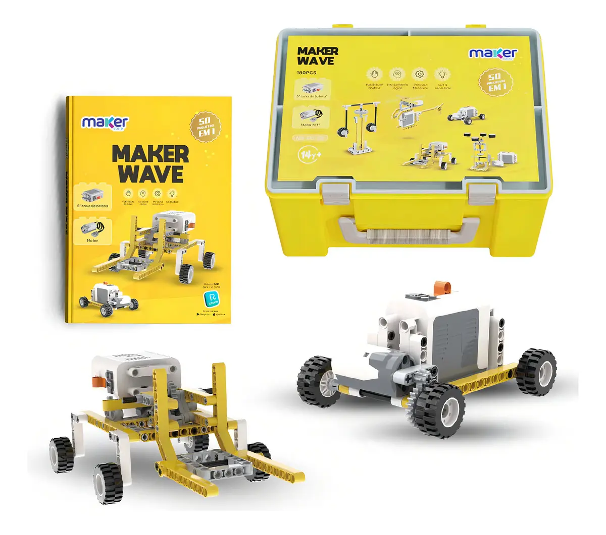 El Kit Educacional Maker Wave es una completa solución de robótica educativa que permite construir hasta 50 proyectos en un solo set, ofreciendo una experiencia de aprendizaje amplia, dinámica y entretenida para niños y principiantes.